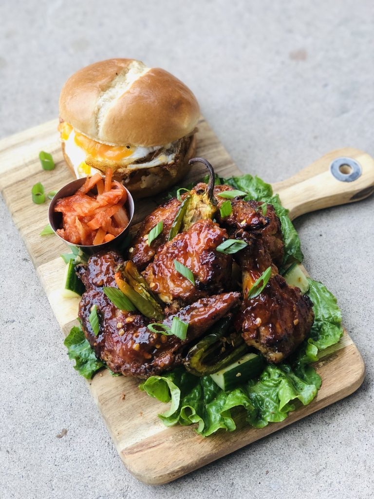 - Enjoy the wings with kimchi and burger bun